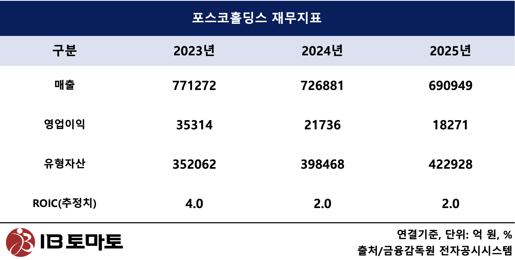 포스코홀딩스 측은 <IB토마토>에 "현재 그룹 차원에서 ROIC 목표 달성을 위해 구조 개편, 사업회사 포트폴리오 개편, 수익성 확보 노력을 추진 중에 있다. 리튬 사업만 두고 보면 올해 포스코 아르헨티나 염수리튬 1단계 설비 램프업 완료 후 본격 상업 생산 체제에 돌입해 수익 가시화가 예상되며, 포스코필바라리튬솔루션은 기존 판매구조를 다변화와 함께 저가 원료 확보 및 실수율 향상으로 수익성 개선을 추진 중이다"라고 말했다.